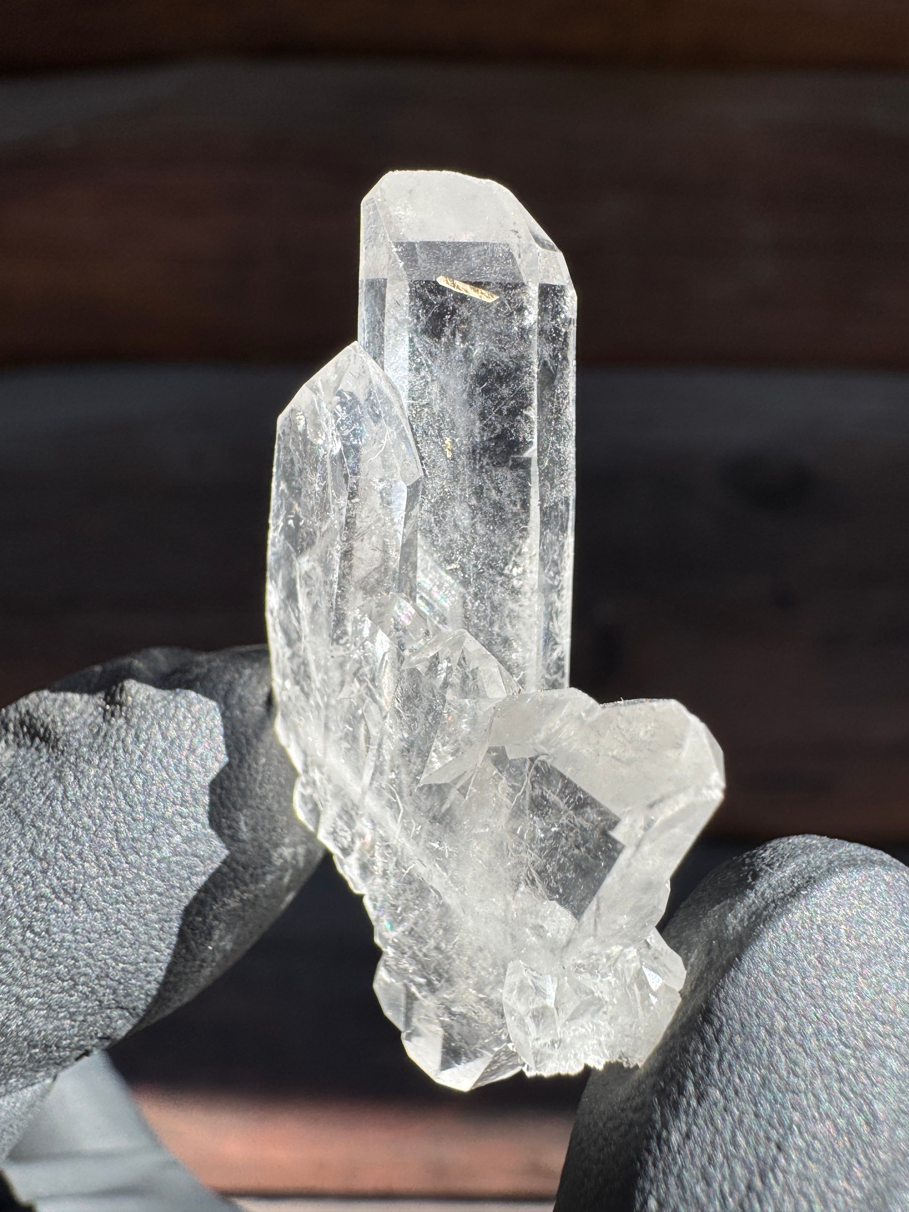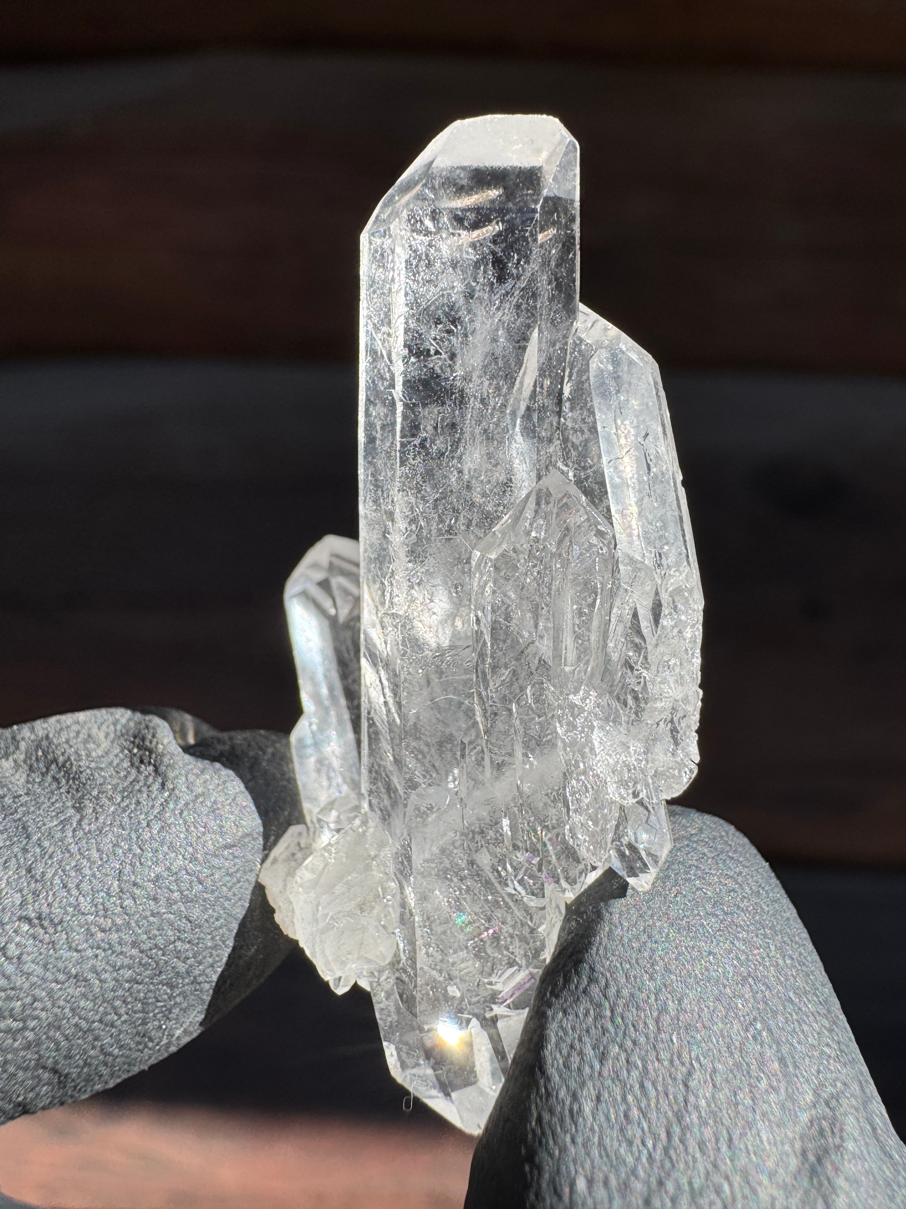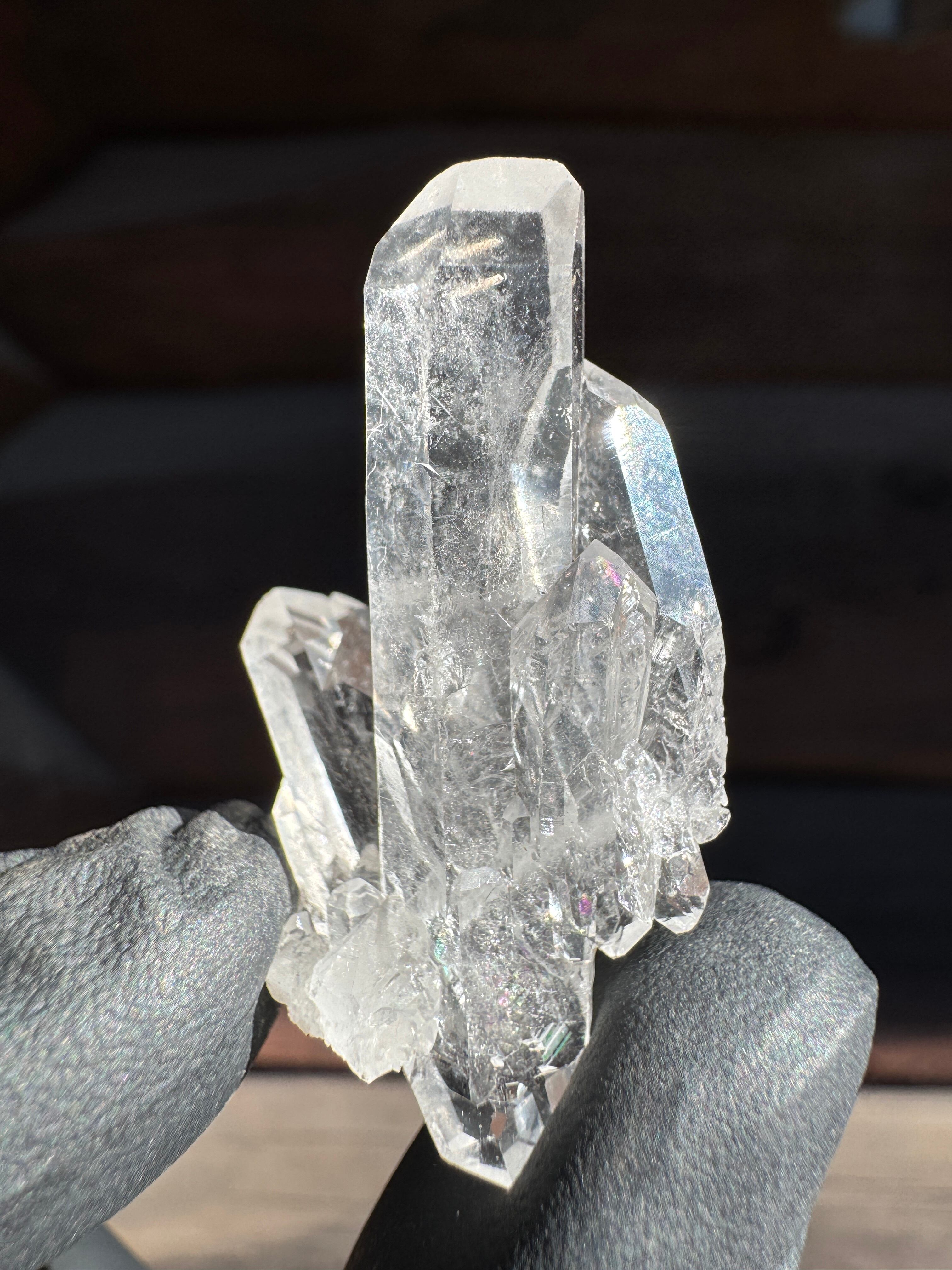 ファーデンとはドイツ語で糸。糸上の筋が内部に見える事からファーデンクォーツと言われる。平行に結晶化する特徴。