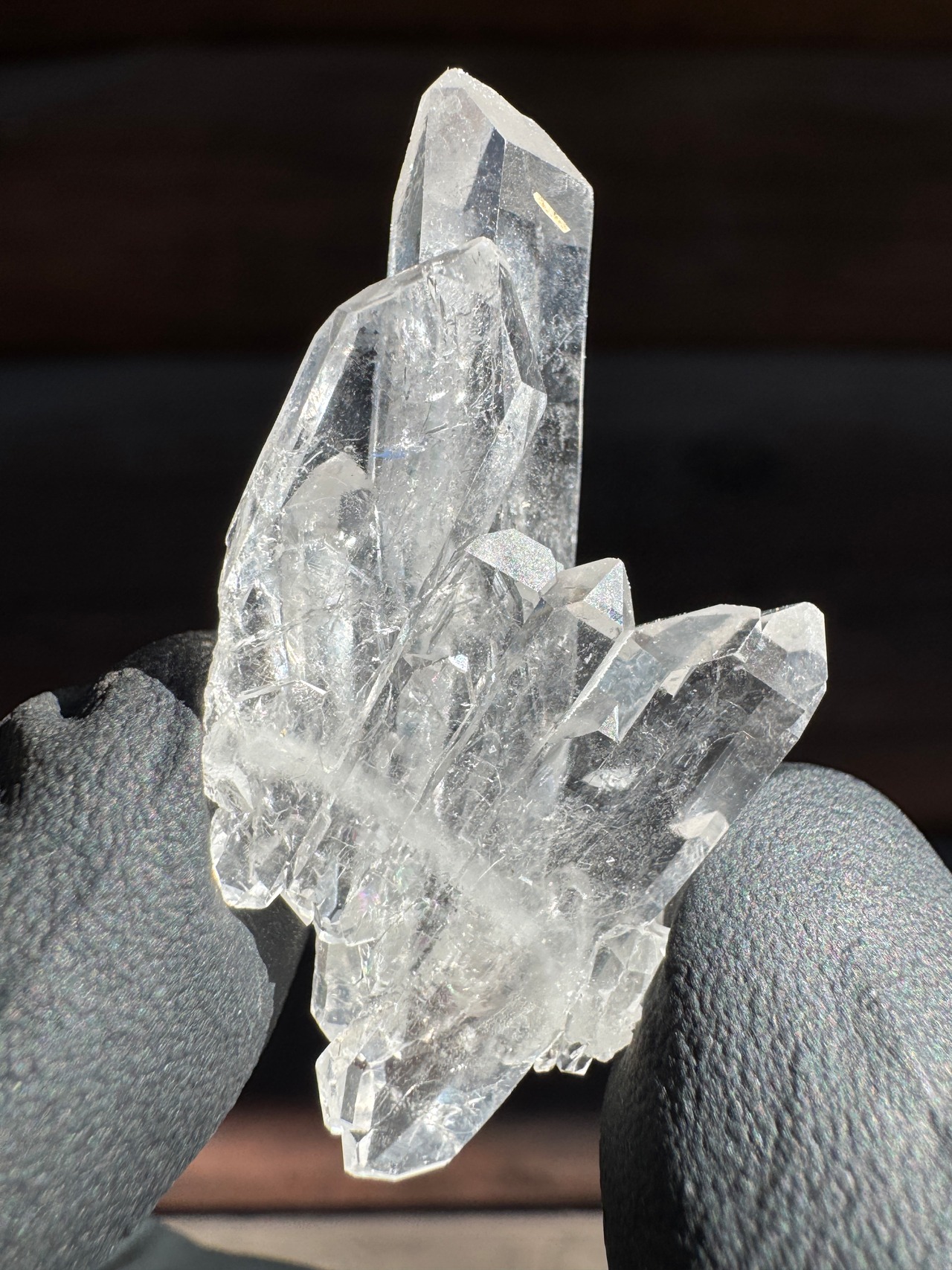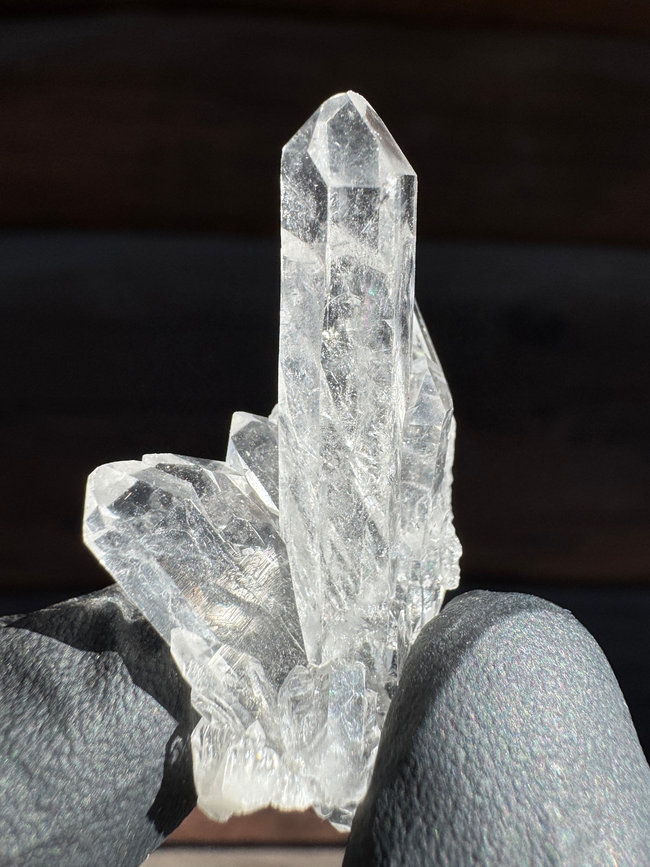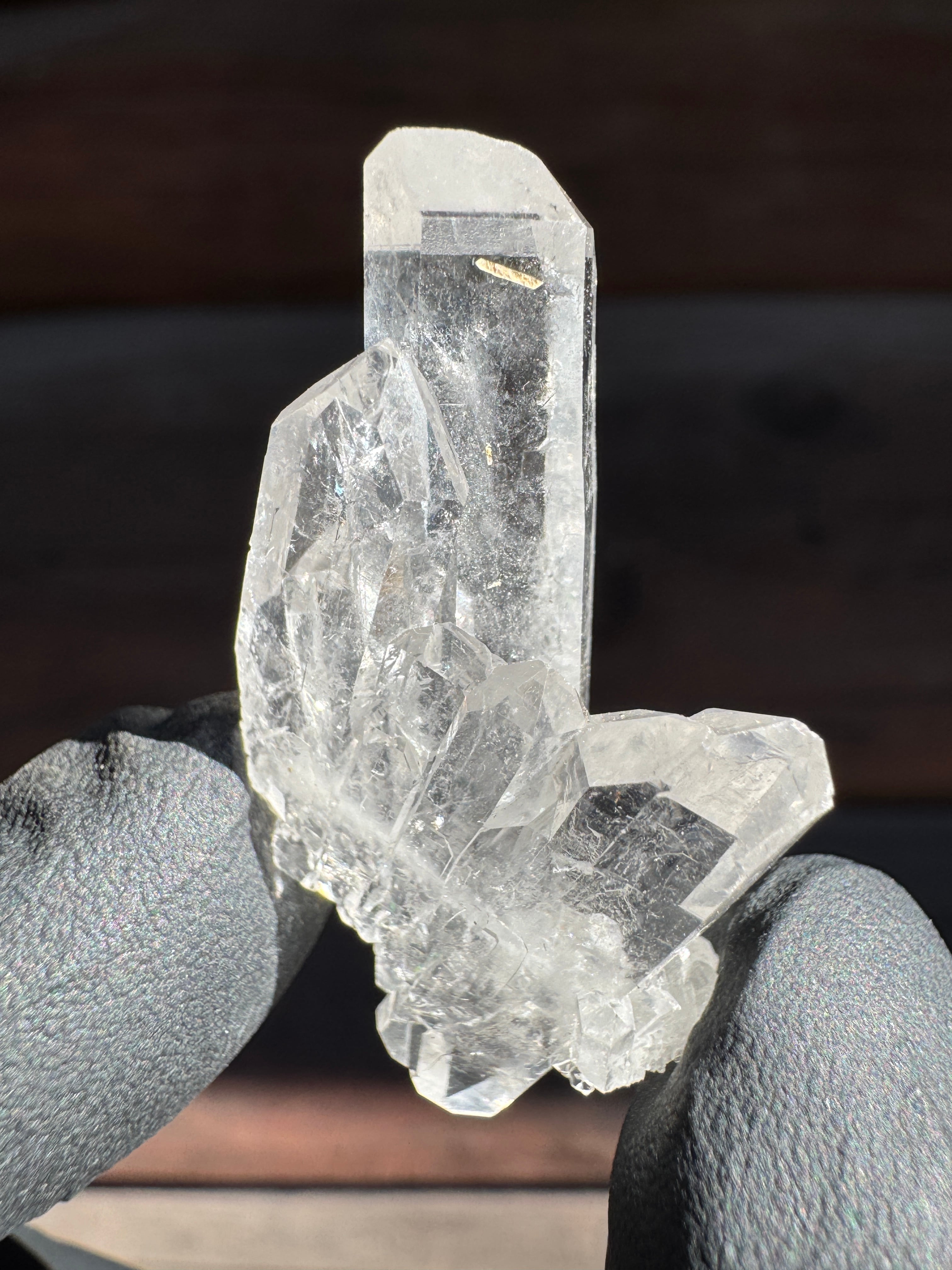 ファーデンとはドイツ語で糸。糸上の筋が内部に見える事からファーデンクォーツと言われる。平行に結晶化する特徴。