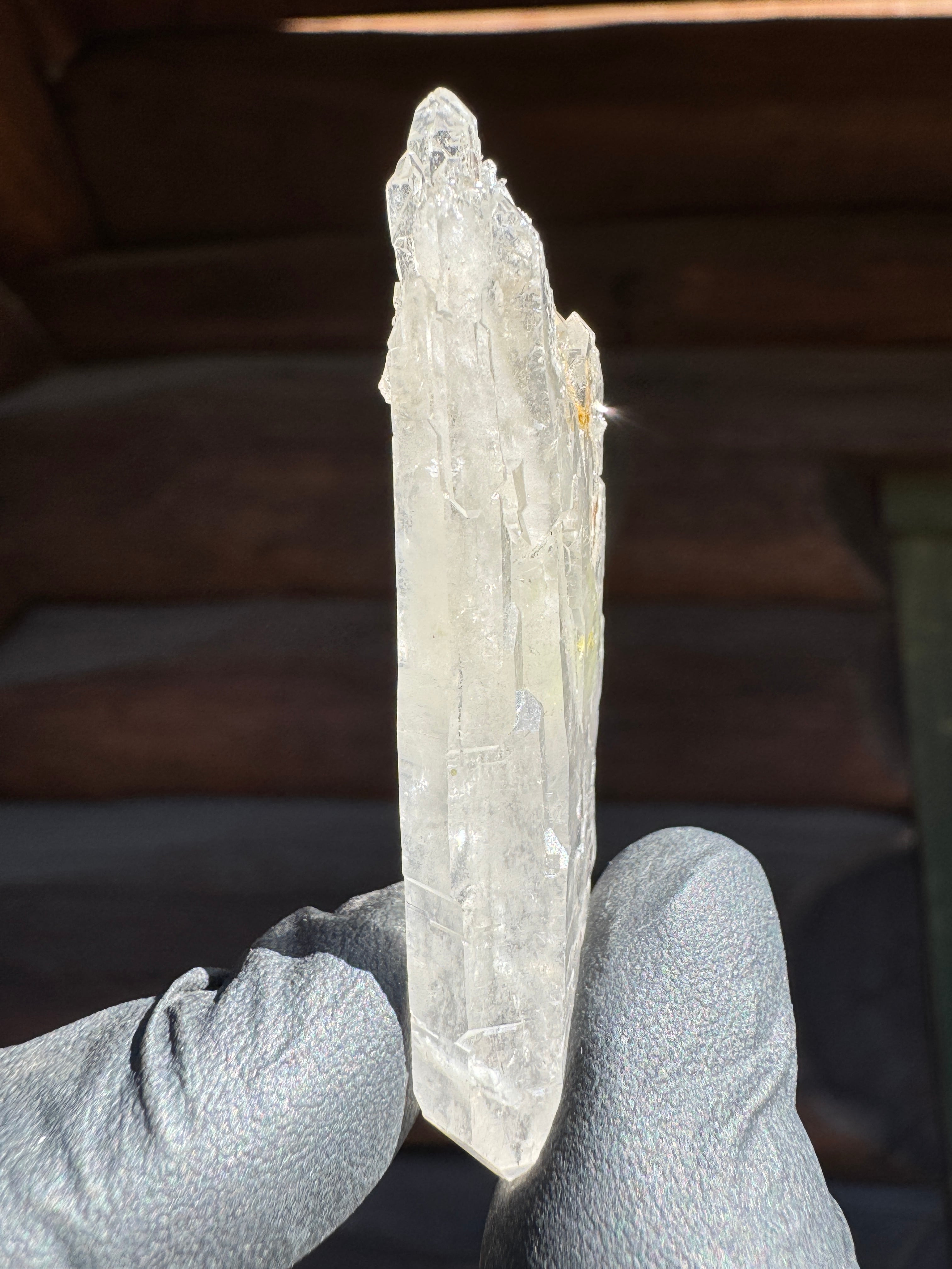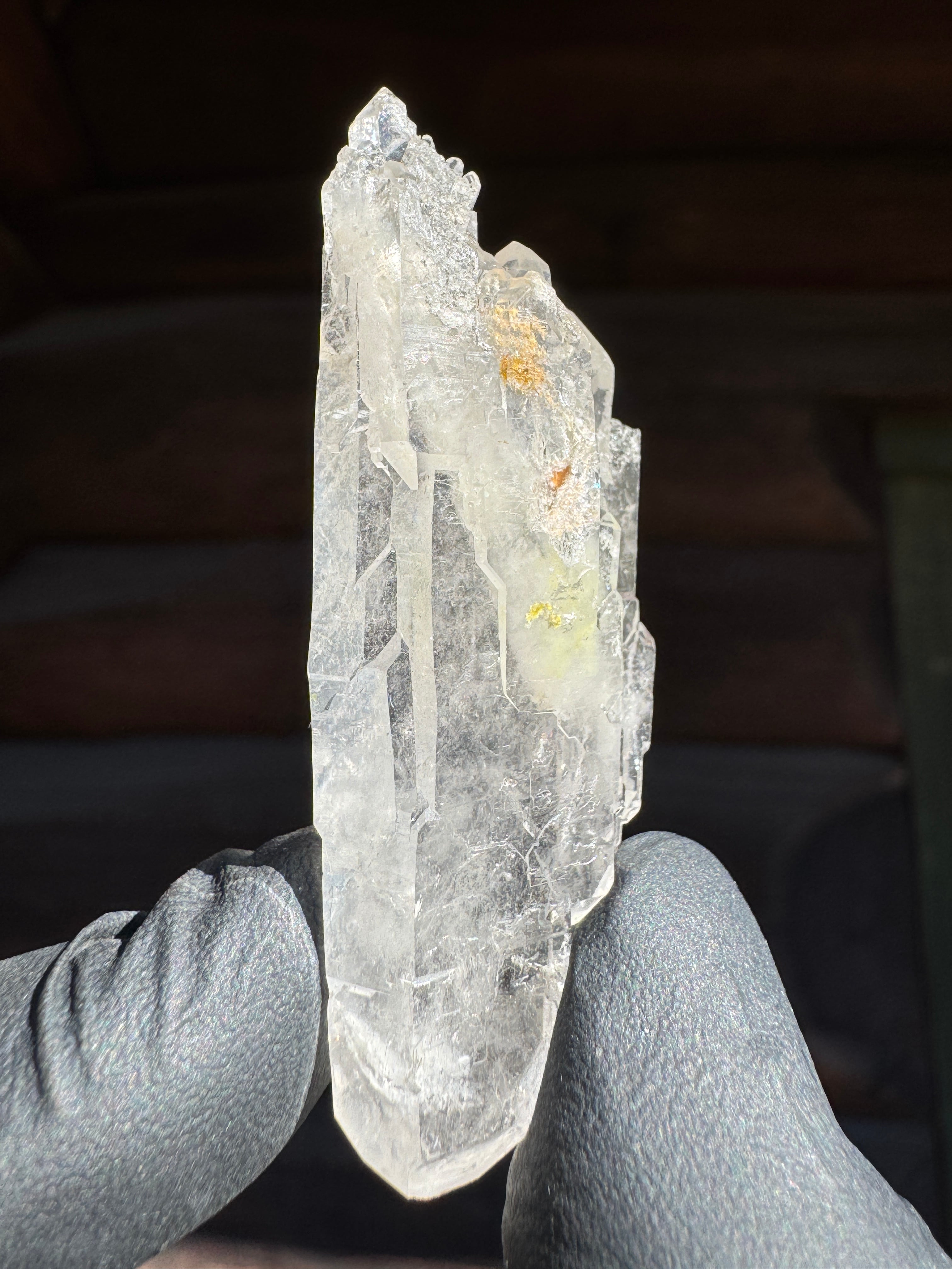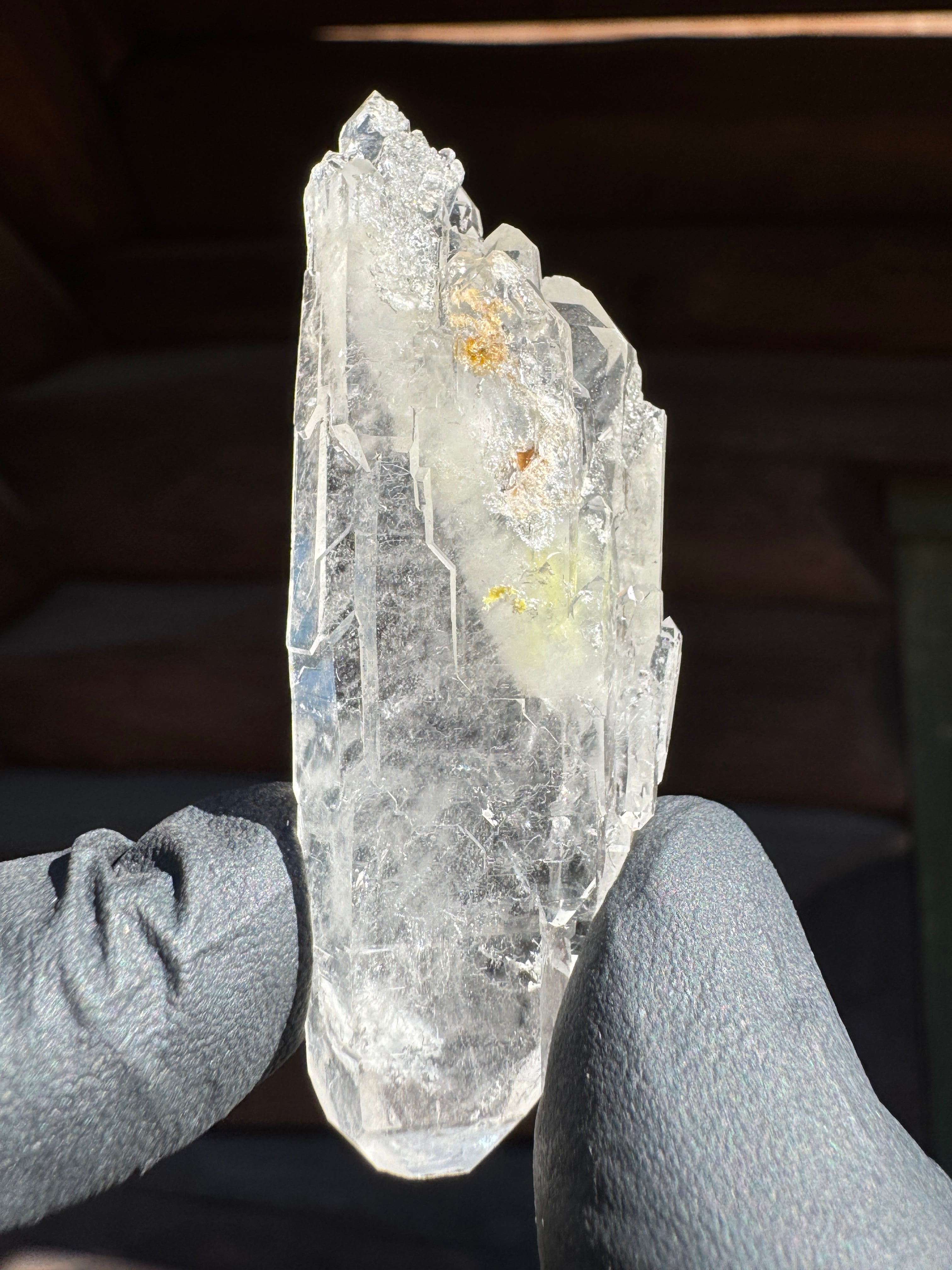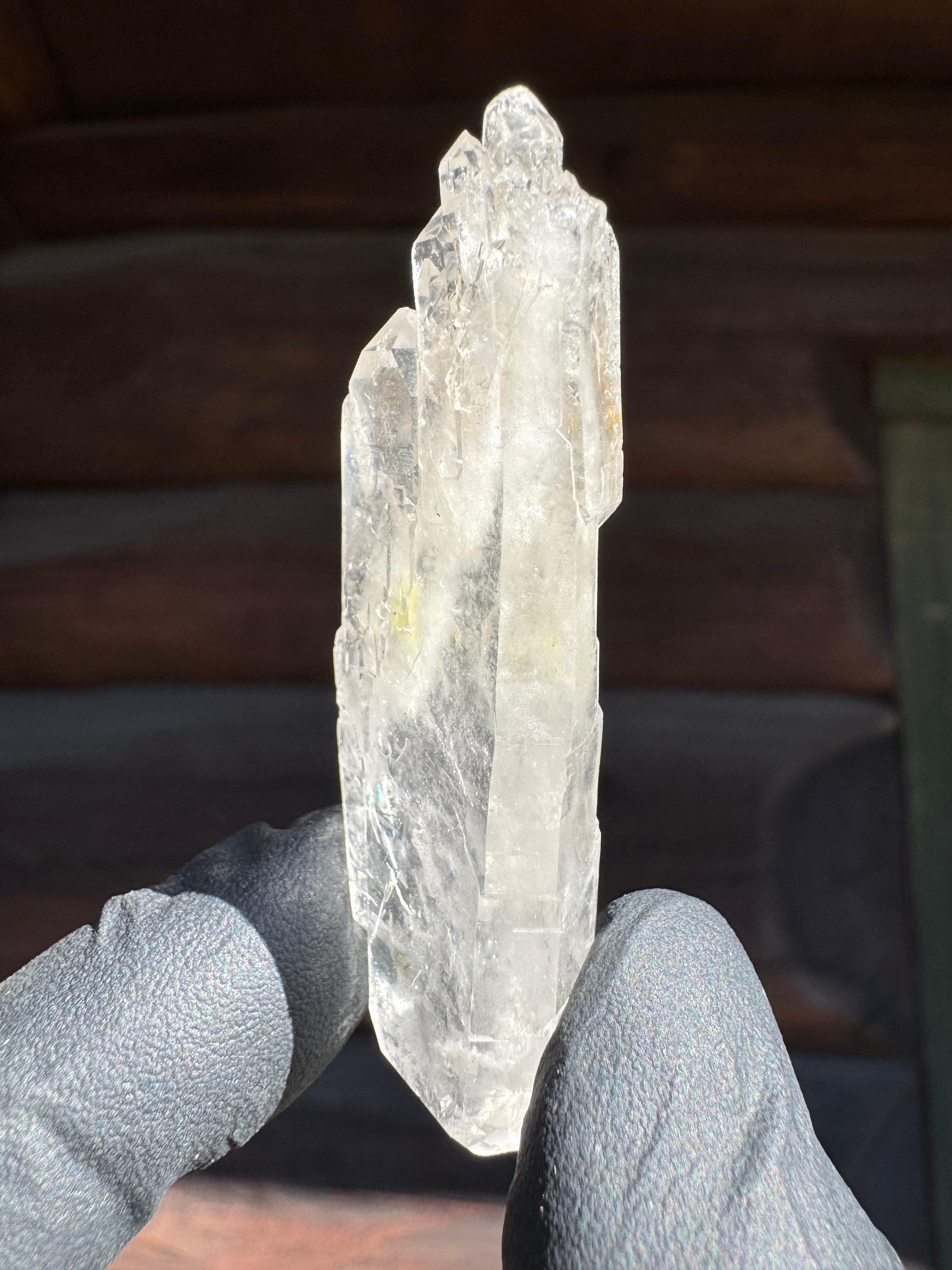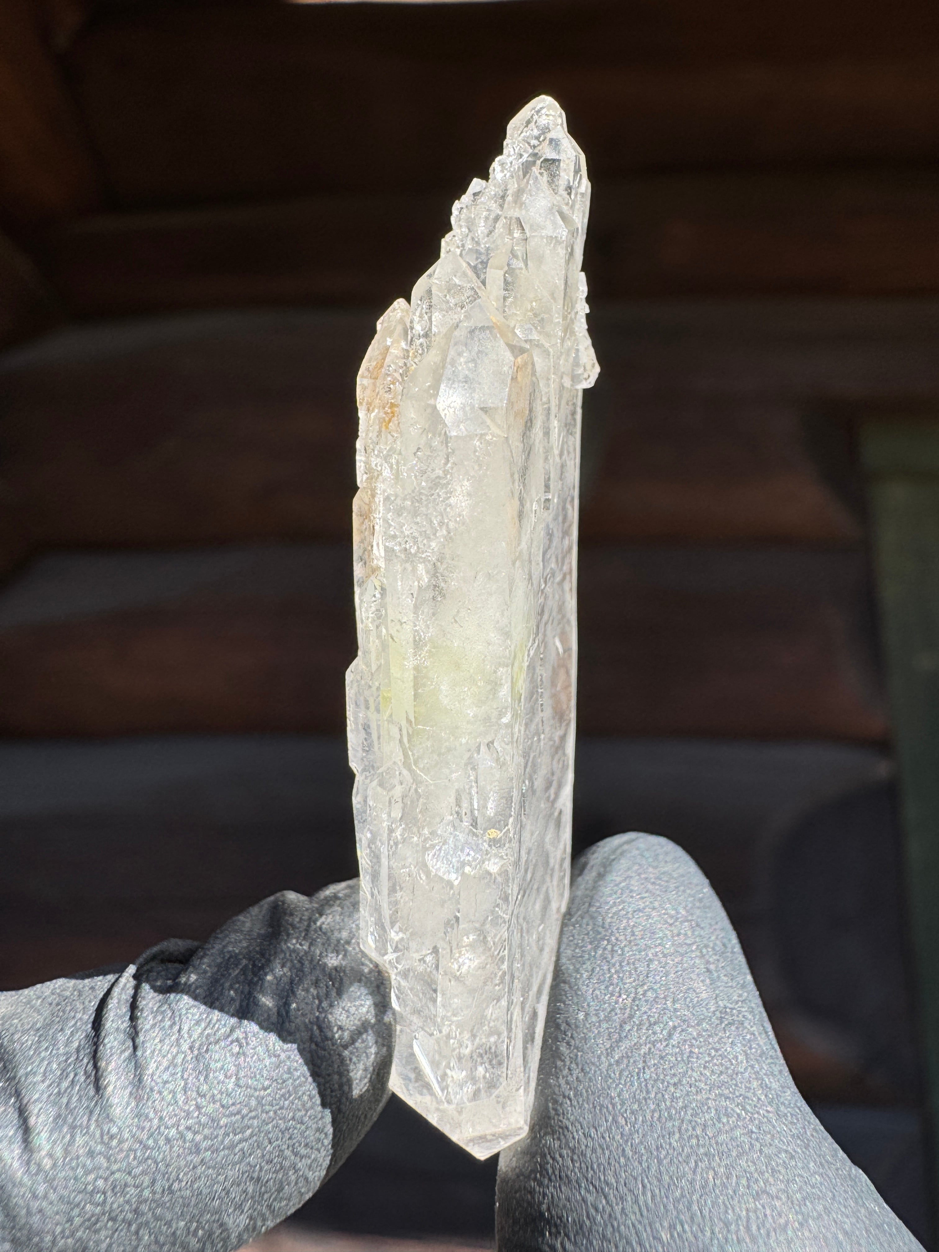 ファーデンとはドイツ語で糸。糸上の筋が内部に見える事からファーデンクォーツと言われる。平行に結晶化する特徴。
