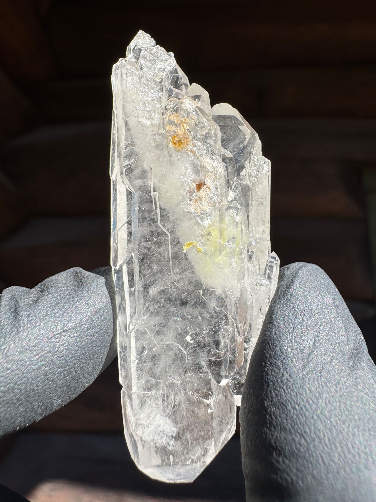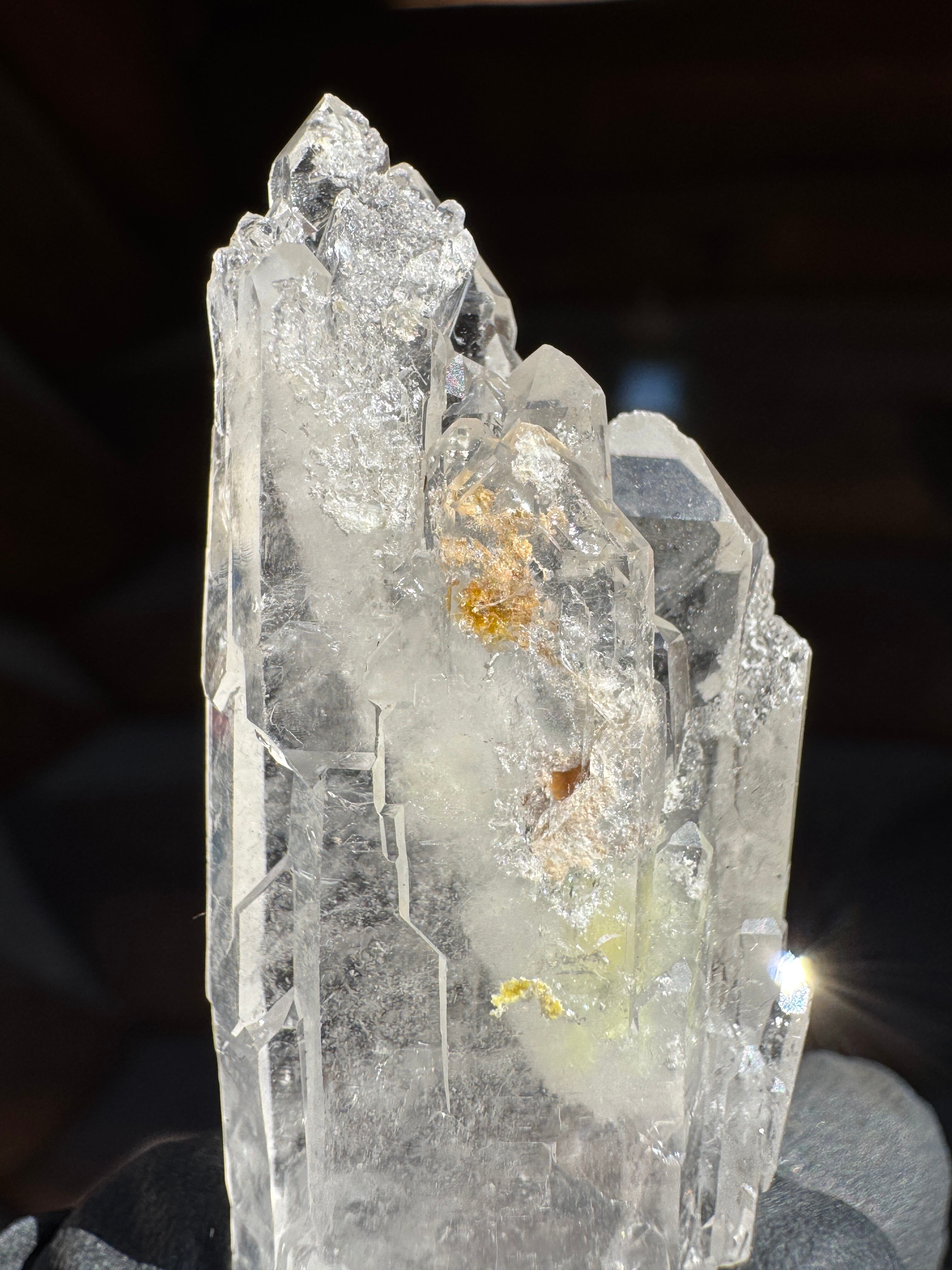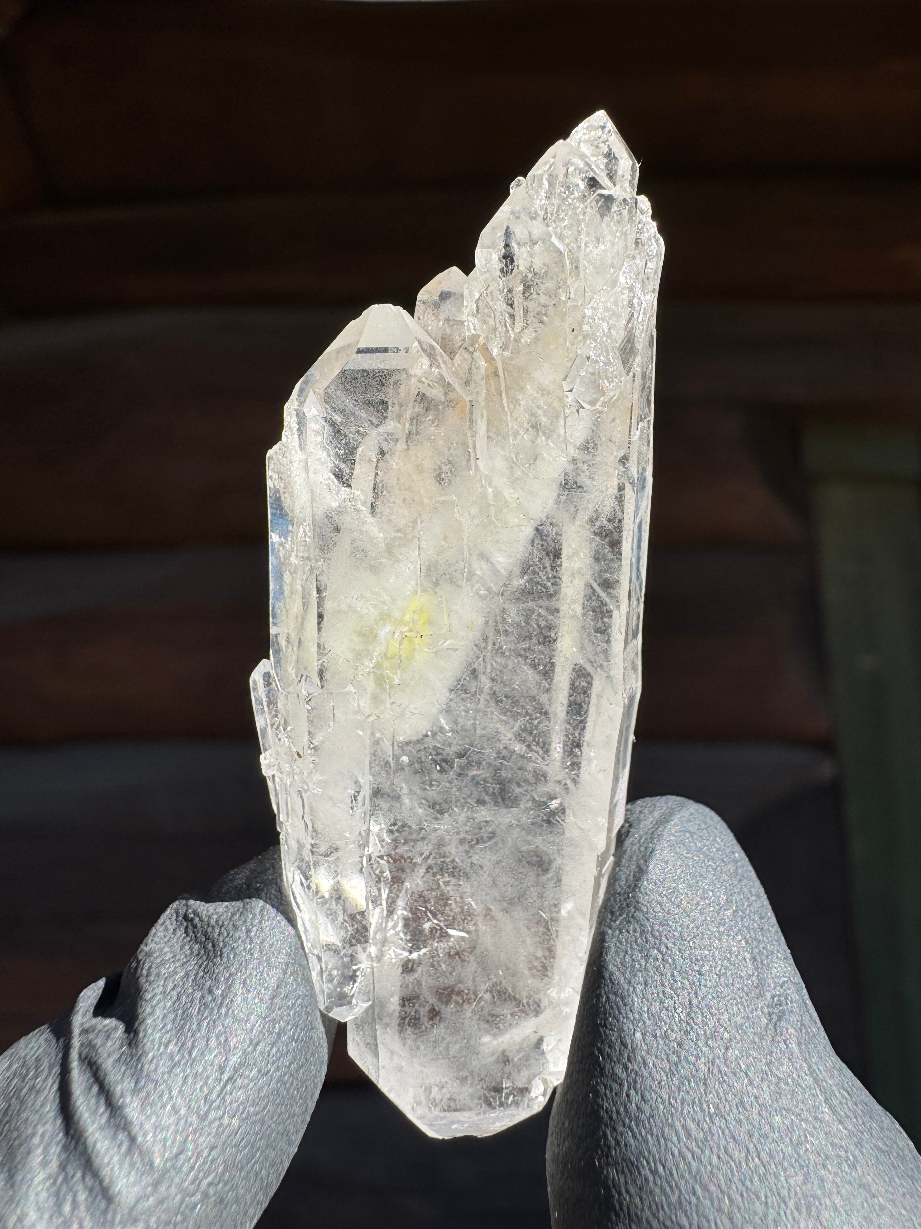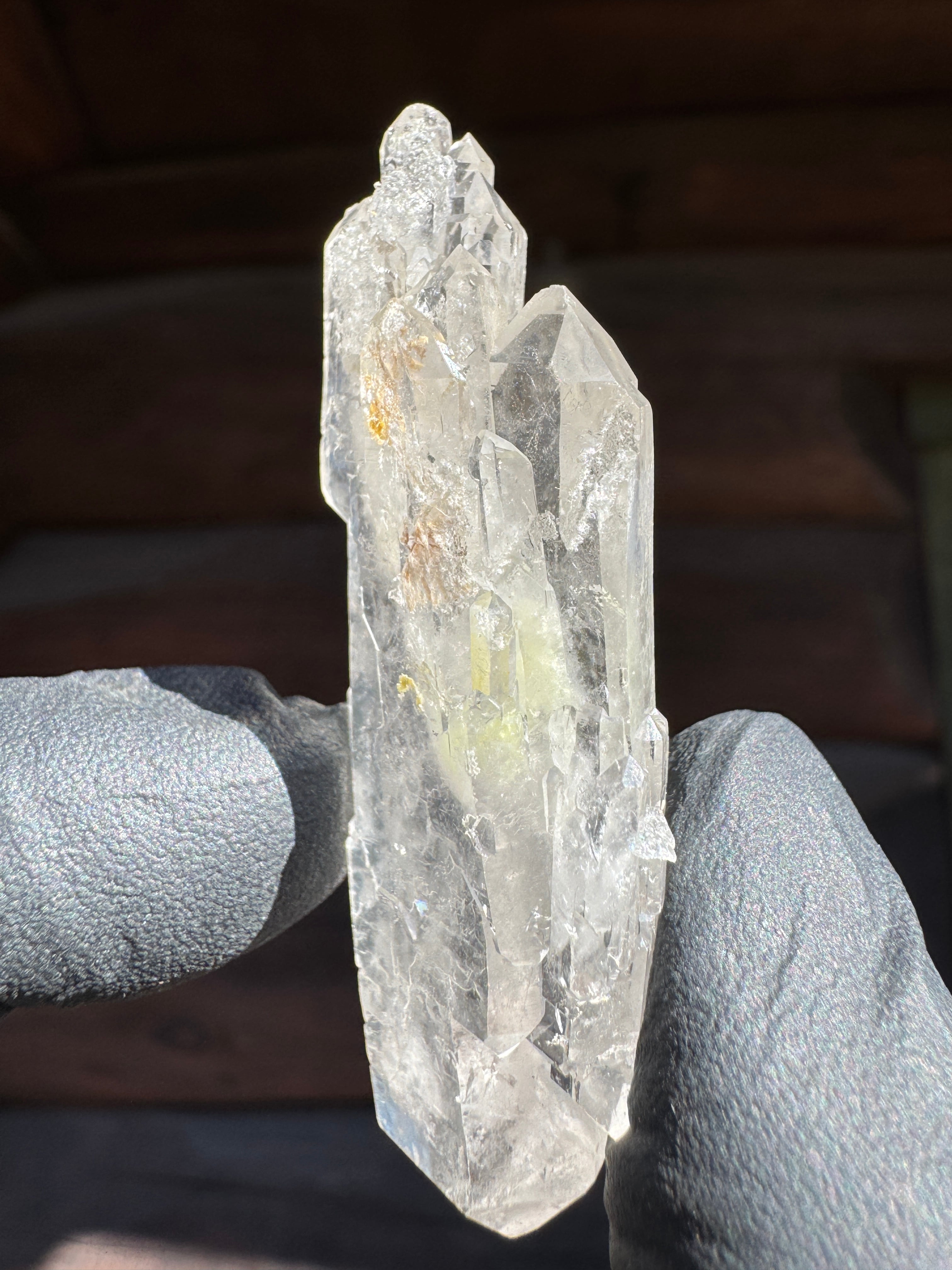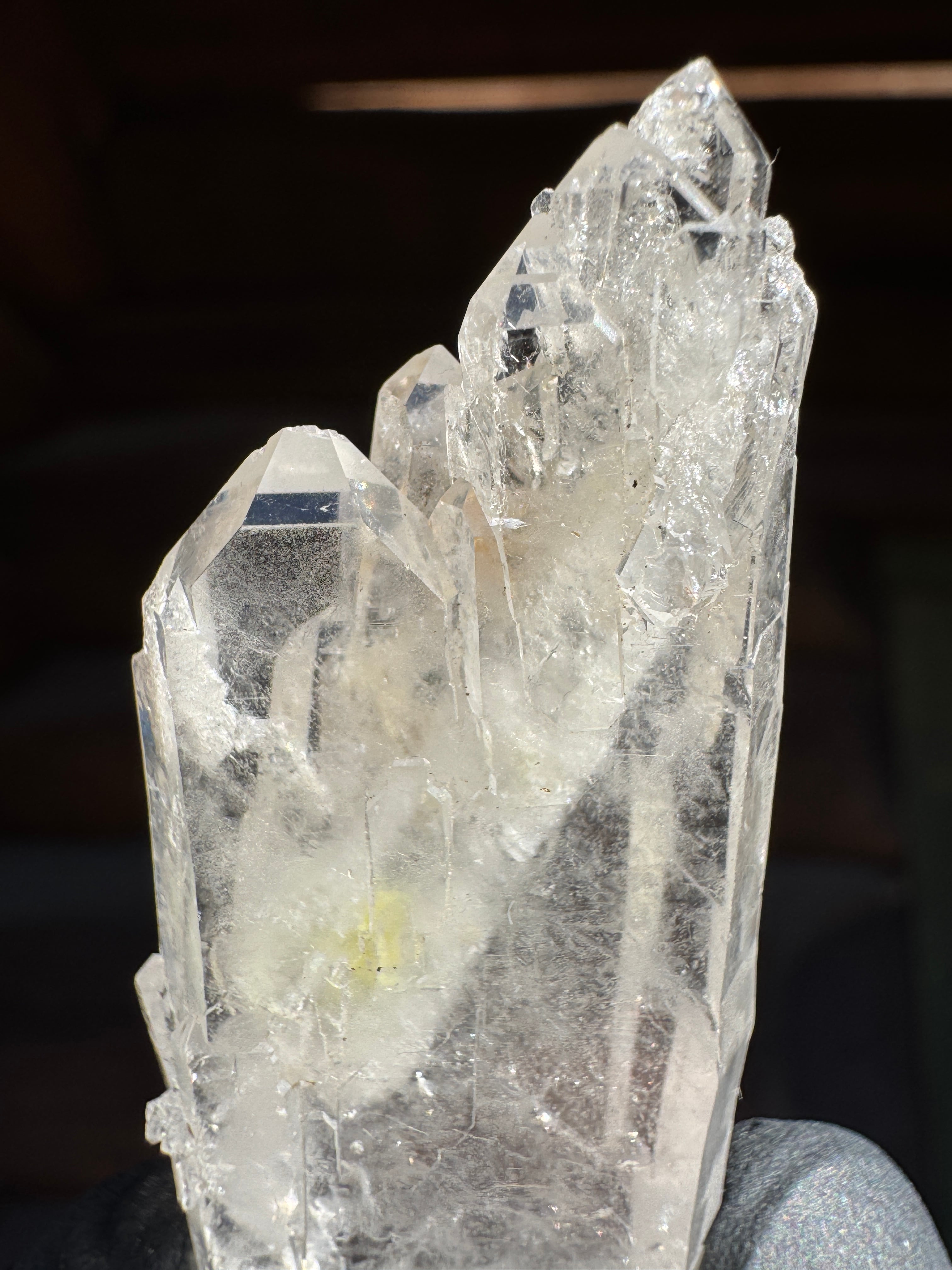 ファーデンとはドイツ語で糸。糸上の筋が内部に見える事からファーデンクォーツと言われる。平行に結晶化する特徴。