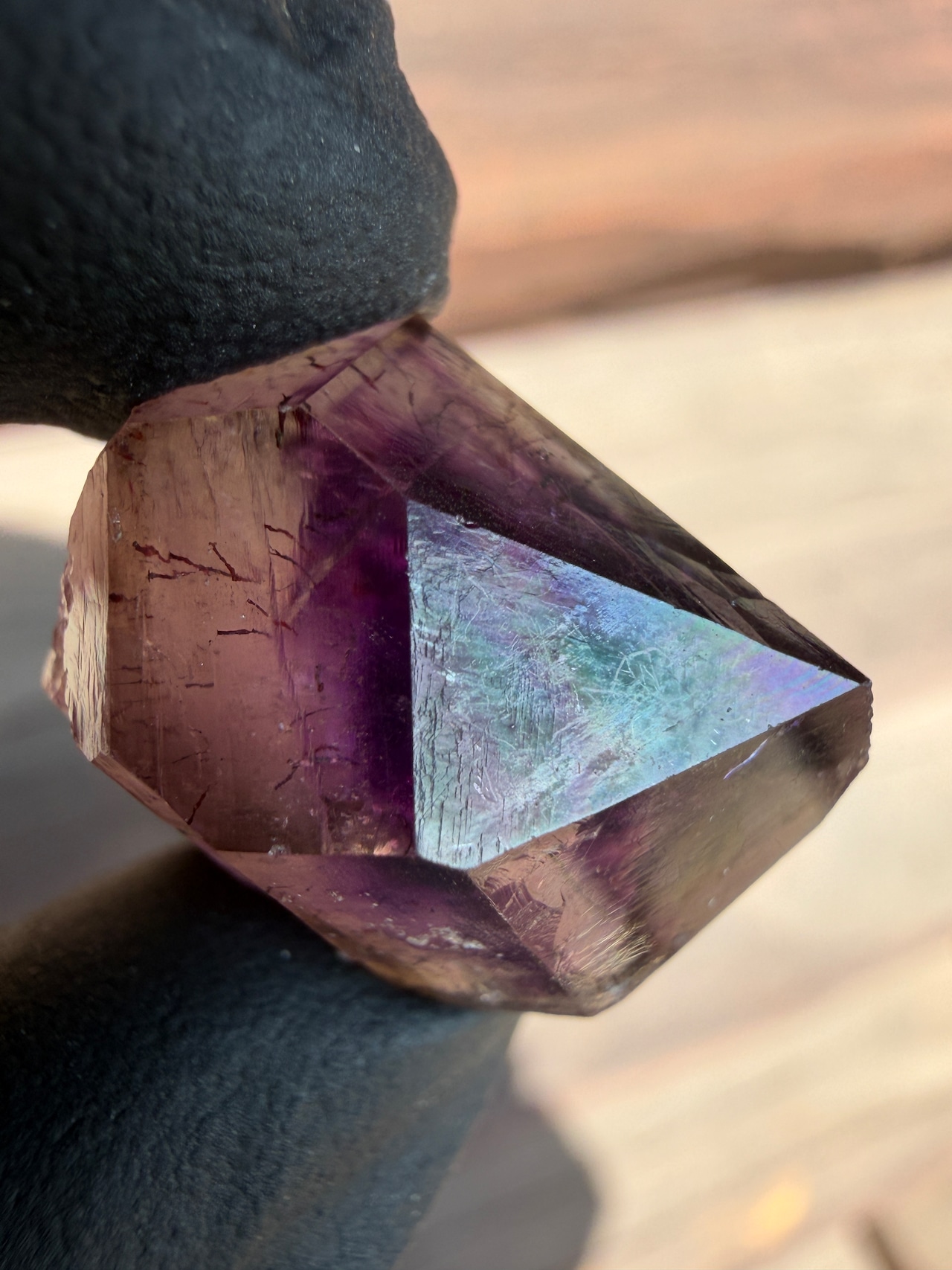 全てのファセットにイリデッセンス効果の有るアメジストは滅多に出会えないと思われます…