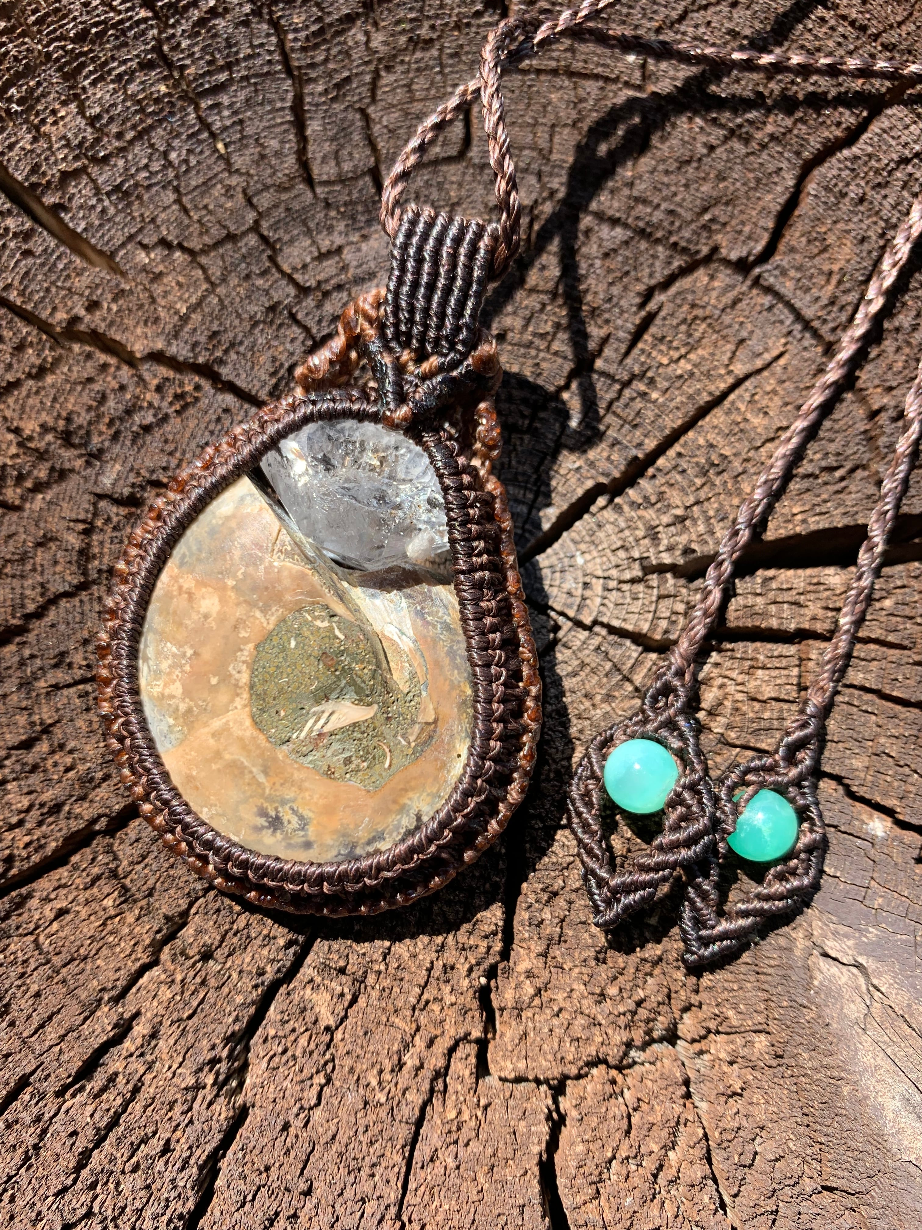 ハーキマーダイヤモンド×アンモナイト マクラメ ペンダント