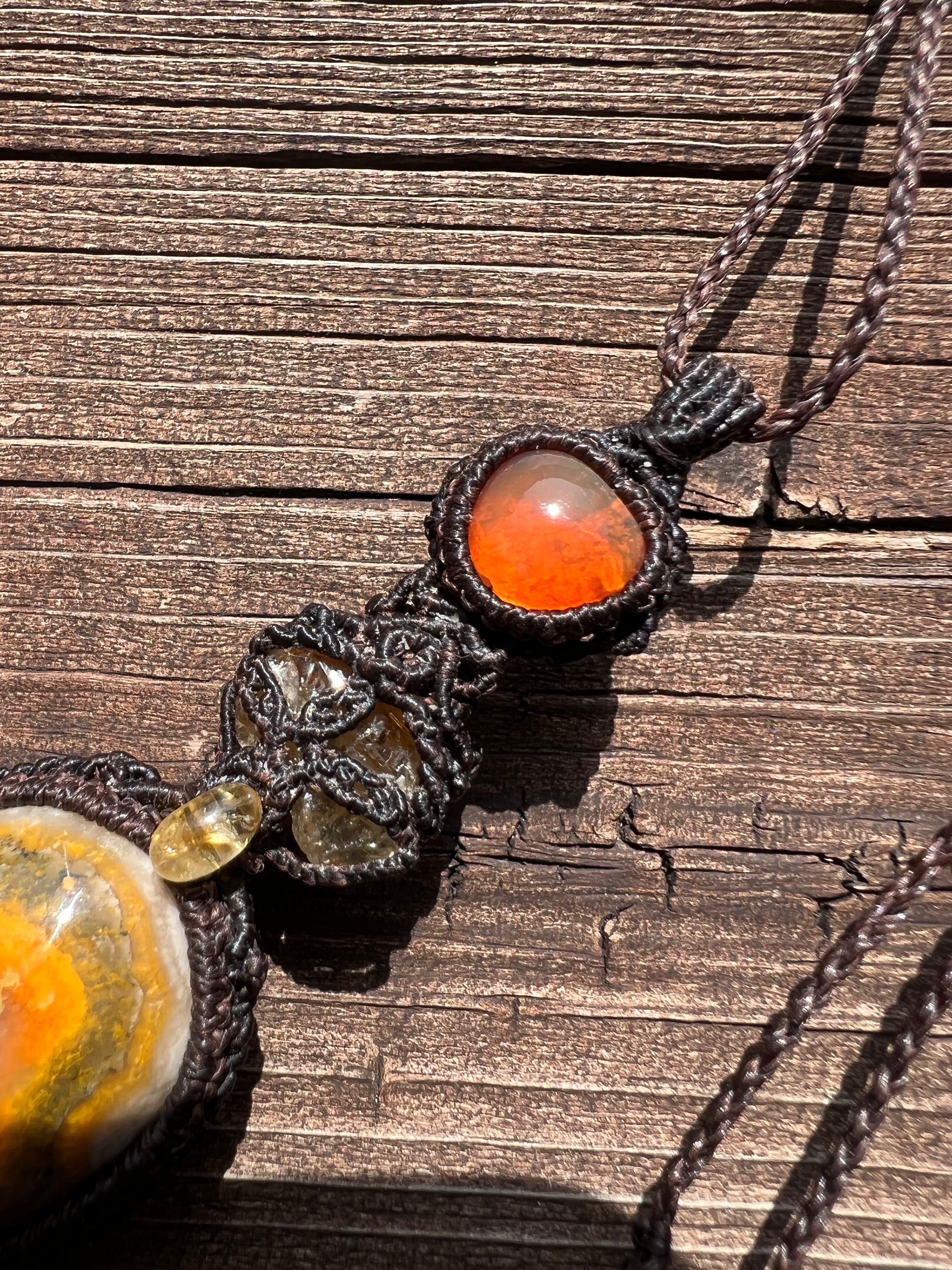 カンテラオパール シトリン バンブルビージャスパー マクラメ ペンダント
