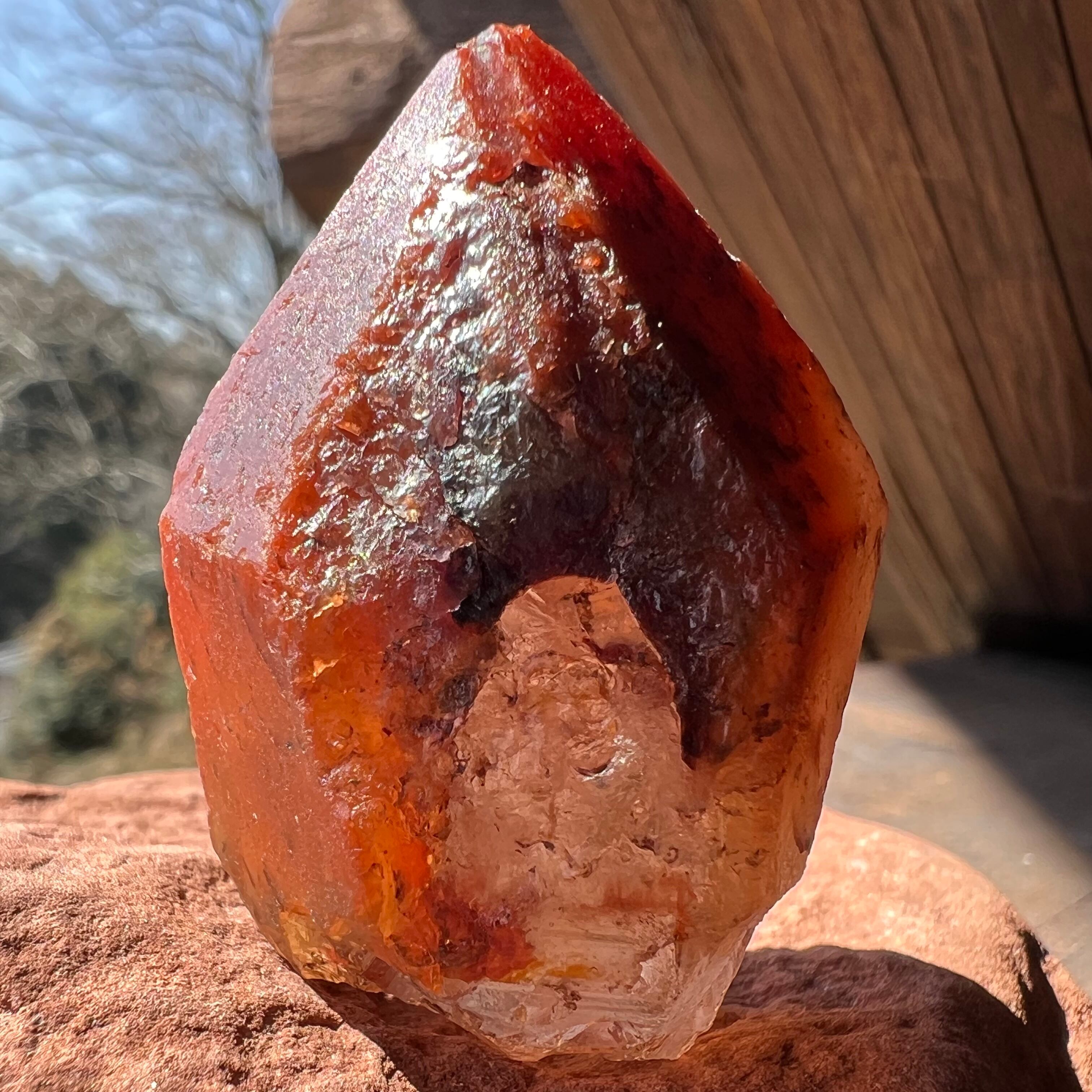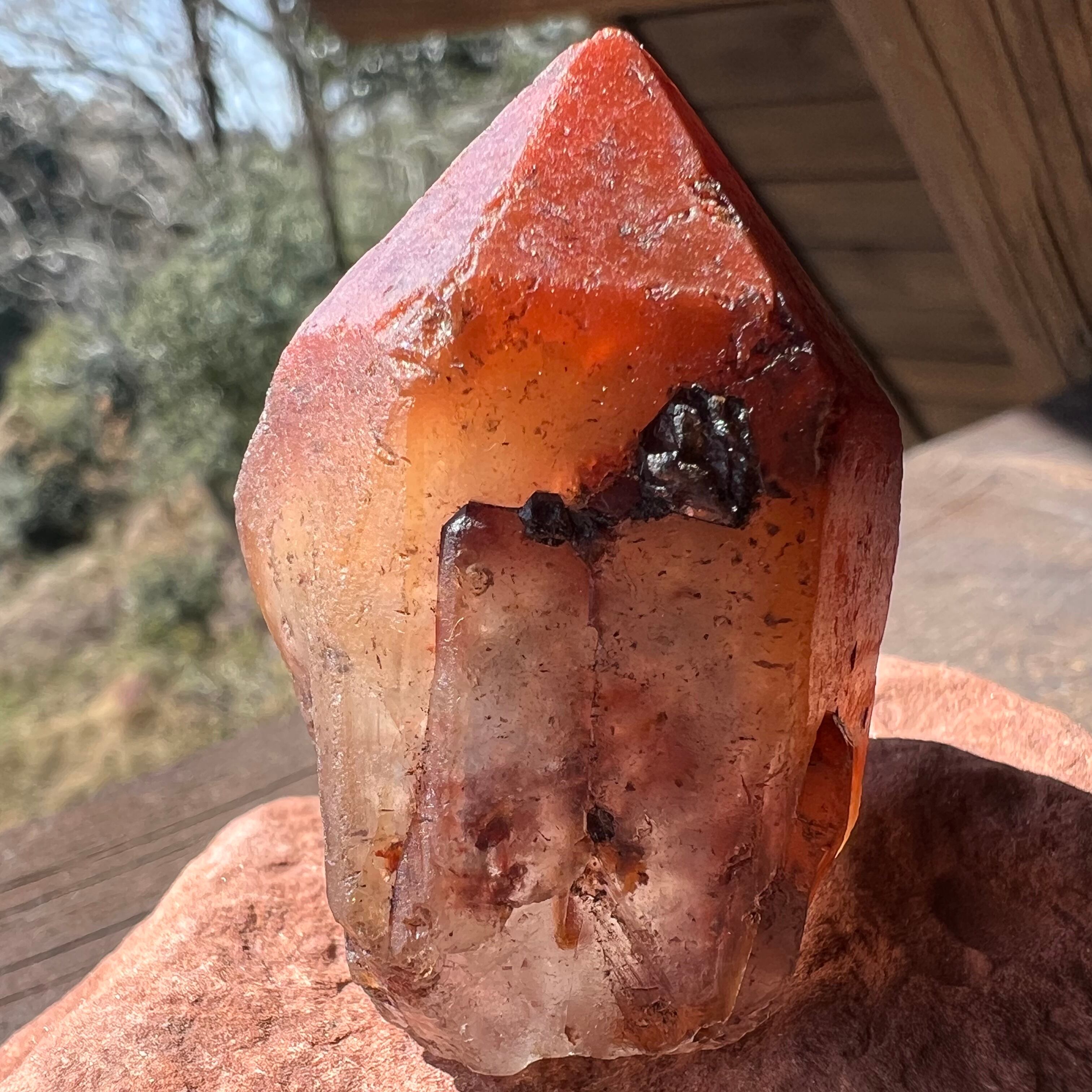 透明なクォーツが第一層、その周りのヘマタイトクォーツが第二層。他の産地にはない不思議なクォーツです。